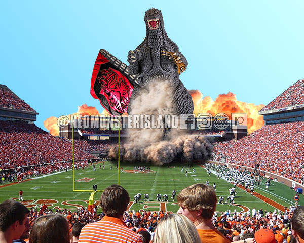 Bagged and signed 8x10 print on cardstock paper suitable for framing. Godzilla approaches critical level! Godzilla, a University of South Carolina Alumni, attacks Death Valley.